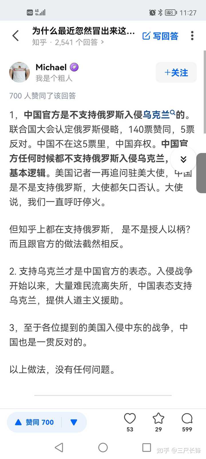帮你站台总得获得精神上的满足吧 不能前脚因为谈论2000>3000被小粉红喷 后脚就得帮你在俄乌中说话吧