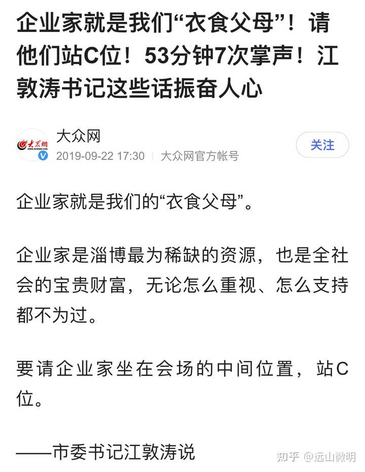 任何一个主政一方的官员面对这样的局面,在企业发展大会这样重要的场合里还能怎么说?当然是表态大力支持企业。为啥要支持企业?企业好才能提供劳动岗位,才能有人留下来。这个城市才不会慢性死亡。