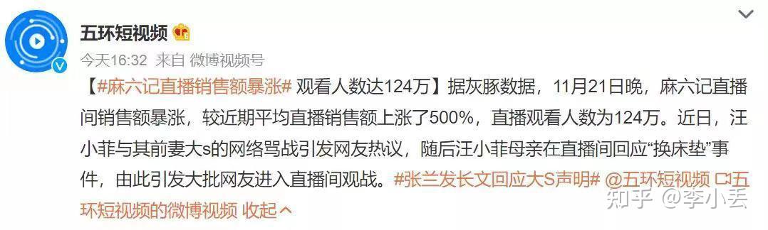 张兰女士的直播间则涌入了124万人观看,销售额同比增加500%。