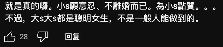 如果还不能理解,就看小S和许雅钧就好了。说句实话,《康熙来了》的忠实观众,谁不是对小S从同情、可惜,变成尊重祝福锁死的。当然了你也可以说大小S不一样,小S能容忍老公出轨不一定代表大S能容忍,但汪小菲之前被爆各种疑似出轨,不是一次两次的,如果真的因为出轨离婚,不会到这个时候的。而且大小S的关系显然不是一般亲姐妹,她们的利益捆绑、价值互相影响太深了,互相介入彼此的人生也太深了。