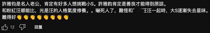 小S,嘴上跑火车开黄腔,节目上各种表演对男嘉宾动手动脚,但实际生活中却有点像女德培训班优秀毕业生,梦想追男宝却连生三女,热衷表演恩爱却屡屡被爆丈夫许雅钧出轨家暴(她个人的婚姻情况也在汪小菲和大S的撕逼中起了非常重要的作用,所以重点介绍下)。