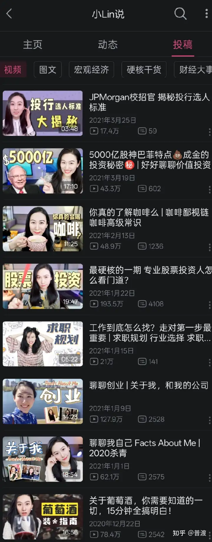 当然,她本身视频的质量也是过硬的。不说行业外,就是业内看的也是津津有味。但是你要说真的能从中学到些什么也是未必,毕竟这只是一档科普类节目。在财经领域有几个顶流,B站上的巫师,抖音上的直男财经,小A,以及知乎上的小Lin。
