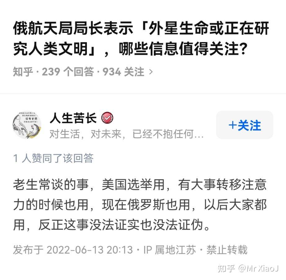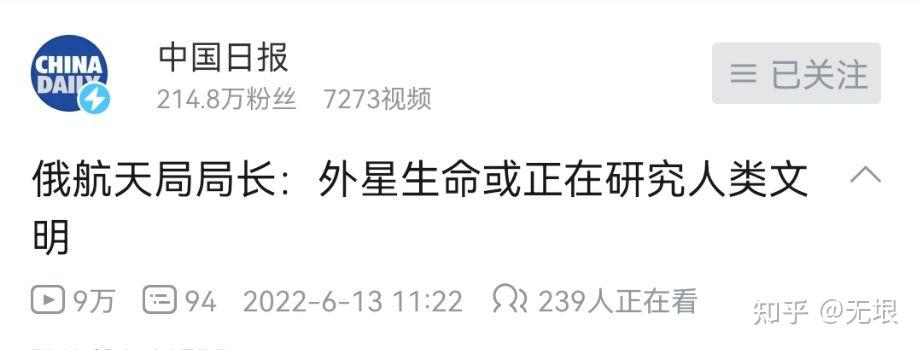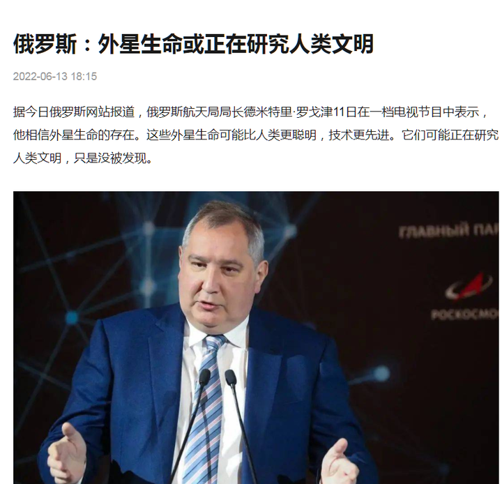 一个月后的6月12号,俄罗斯航天局称外星生命或正在研究人类文明。