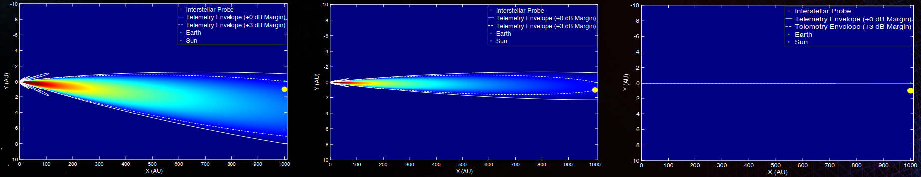 自己对比速度 深空通信在无线电和激光通信波束信号强度对比,左边X波段中间Ka波段右边激光,可见集中多 一味的认为卡尔达肖夫II、III级文明会用无线电来恒星星际通信好比无线电发明前觉得以后会拿超大型高音喇叭来隔海互吼跨洋通信一样。属于“皇帝用的金锄头金扁担”。