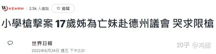 德州羅布小學(Robb Elementary School)5月發生槍擊案後,一名九歲罹難女童的姊姊賈斯敏‧卡扎爾斯(Jazmin Cazares)23日赴德州州議會作證,哭求議員通過更嚴格的槍枝法,並質疑為何那麼多安全措施失效。 另方面,德州公共安全廳廳長麥克羅(Steve McCraw)指控學區警長阿瑞唐多(Pete Arredondo)延誤救援行動,後者23日被放行政假。 17歲的卡扎爾斯23日坐車四小時到德州州議會參加聽證會,「我現在不應該在這裡,我本該待在家跟我妹一起看電影。」 她淚流滿面懇求州議員採取行動,通過更嚴格的槍枝法,「我懇求諸位做點事或修法,因為那些該在學校保護我妹的人沒能做到這點。」 卡扎爾斯的妹妹潔克琳‧卡扎爾斯(Jacklyn Cazares)生前夢想去巴黎和當獸醫,但她卻成為5月24日校園槍擊案的19名學生亡魂之一,兩名教師也喪命。 卡扎爾斯盼能平安度過高中最後一年,她說她從學前教育就開始進行活躍槍手的演練,「返回學校不該是種決定,但現在就是如此,我還有高三一年,我能活過這一年嗎?」
