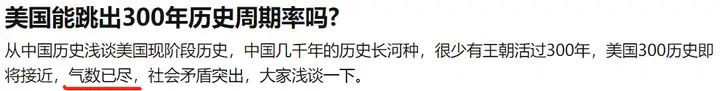 美国根本就不是这种政治环境,拿这个什么300年周期率去套完全套不上。