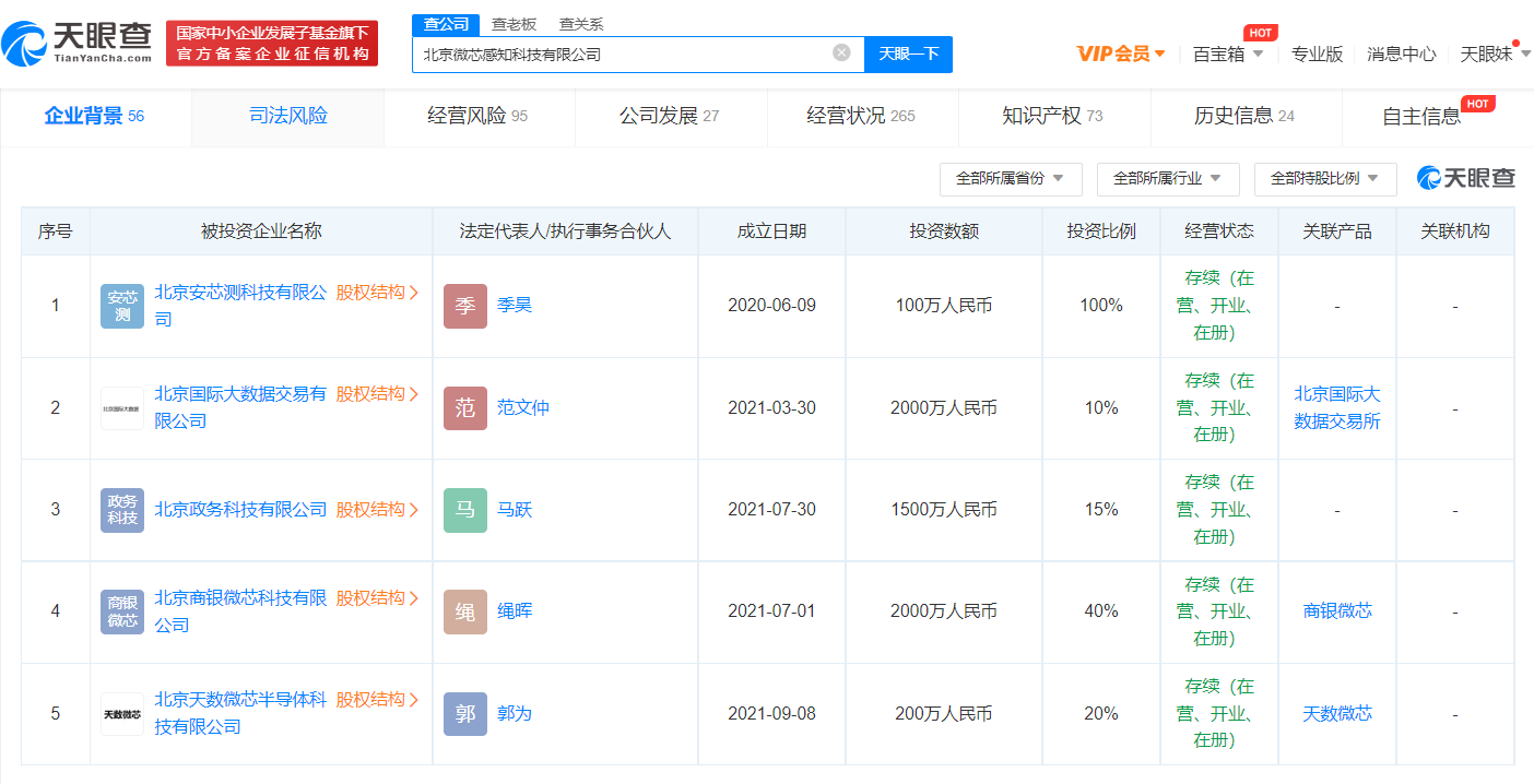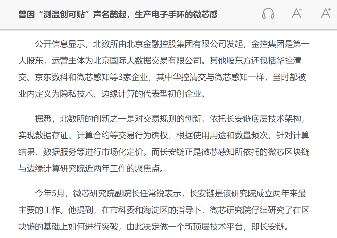 据报道,北数所由北京金融控股集团有限公司发起,金控集团是第一大股东,运营主体为北京国际大数据交易有限公司。其他股东方还包括华控清交、京东数科和微芯感知等3家企业,其中华控清交与微芯感知一样,当时都被业内定义为隐私技术、边缘计算的代表型初创企业。