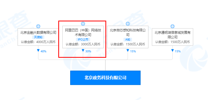 该公司对外投资了5家公司,其中北京政务科技有限公司的股东之一是阿里巴巴。