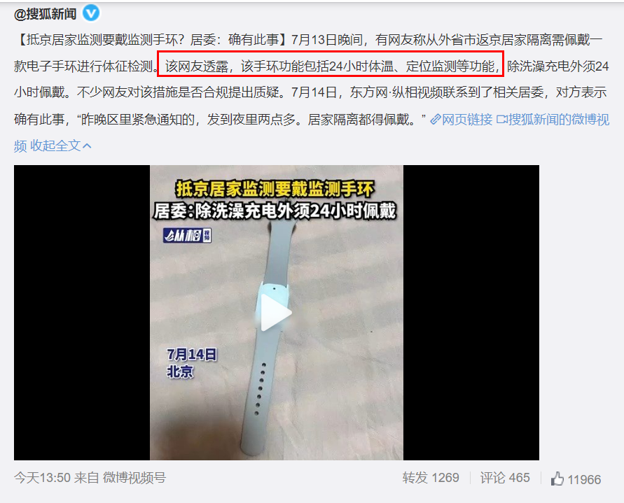 网友反映返京隔离需戴「监测手环」,卫健委回应「未发布强制政策」,目前社区已回收手环,如何评价该措施?