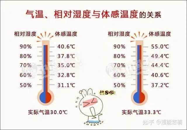 首先人体的散热是通过流汗蒸发来达到降温(汽化潜热原理),在干燥的天气汗液会更容易蒸发,但随着环境湿度增加,空气中湿度提升到100%讲无法继续吸收水分,我们的汗液就会停留在皮肤上,从而体温不断上升。
