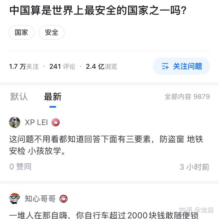- 除了交通安全,还有生产安全,医疗安全等等多了去了。哪一项中国都难说是世界上最安全的国家,哪怕是最安全的之一。举例来说,全球七成的矿难发生在中国。然后中国觉得自己最安全,奇怪不奇怪。