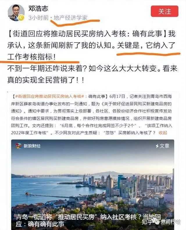 青岛一街道办,也被下达了卖房任务,大家把手头的工作先放一放,先去卖房吧,当然,销售提成就别想了,这是工作内容的一部分,如果实在卖不出去,自己买一套也行