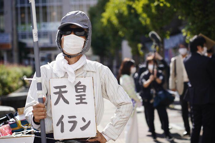 德岛一区的议员竞选者,佐藤行俊,竞选议员的口号就是废除天皇和自卫队。在当地还挺有名的呢。