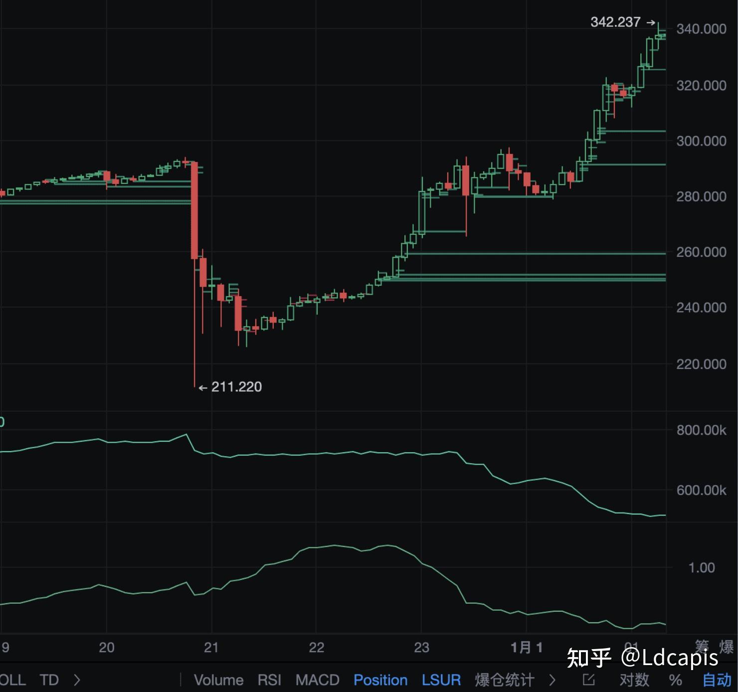 LSUR就是一个非常实用的指标,LSUR >1 就是散户做多,LSUR <1 就是散户做空
