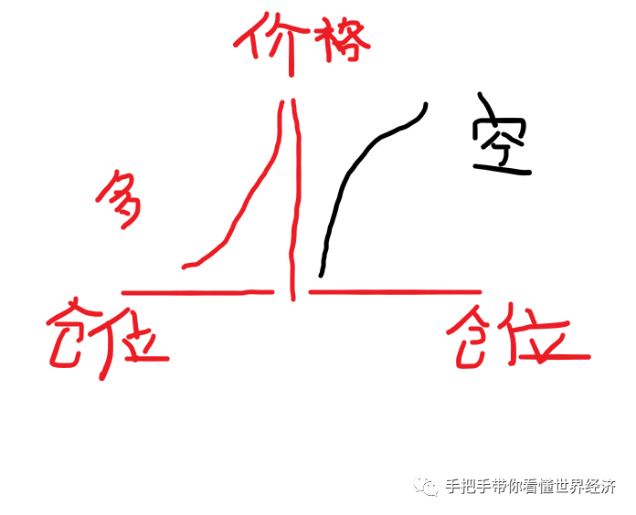 上图是对冲式建仓的多空仓位分布图,当现货市场价格低位的时候,买入仓位是最重的,空单仓位是最轻的,而到了价格高位则反过来。