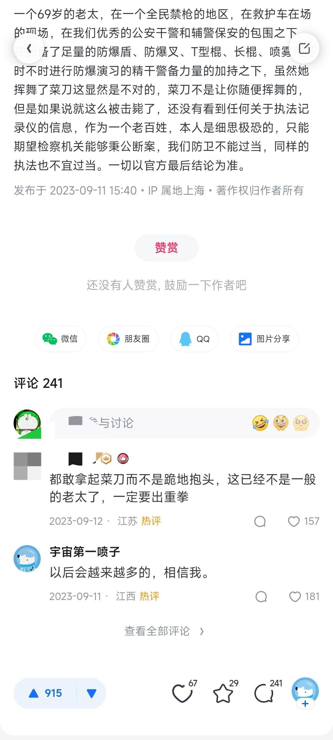另提一下,国内只要是对于普通公民来说能构成无限制防卫的情景,警察开枪在我看来都没有任何毛病了,更别谈现在极其苛刻的开枪标准了,但凡能在国内被合法合规的当场开枪击毙的,放到美国那都是能被集火几百发的。