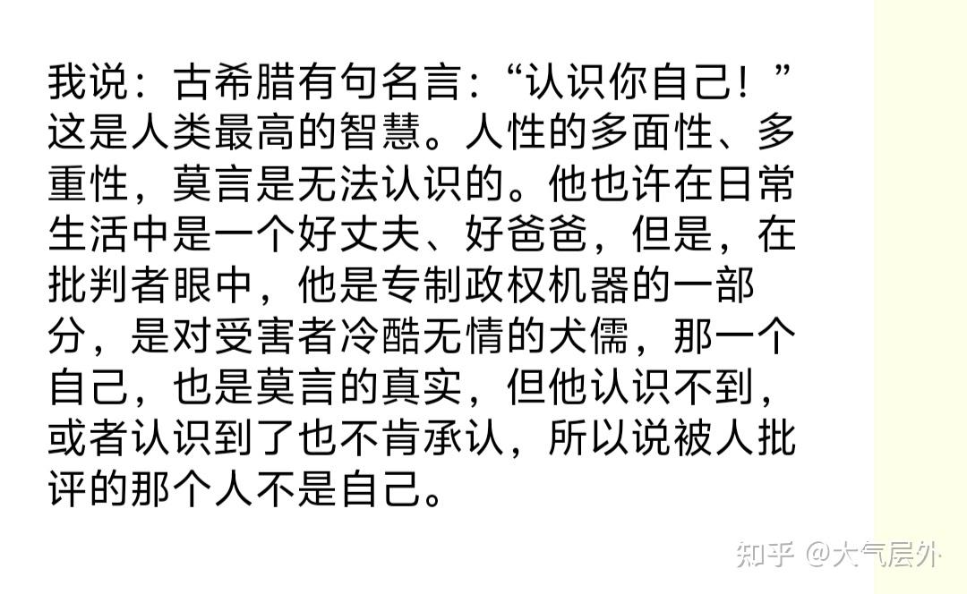 时代变了,莫言是非常忠诚的改开拥护者,体制内作家。他基本的立场呢,就是更亲民,更开明,更改良的文景二帝的立场而已。只是现在已经不是那个时代了,他这种前朝遗老自然得被刘彻的酷吏折腾一下。