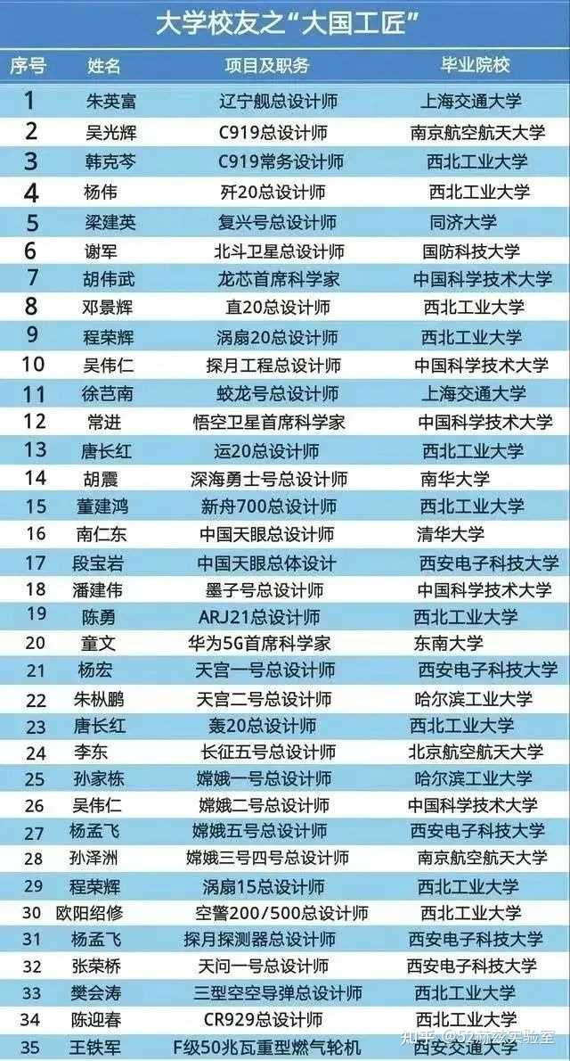 比如我国歼20总设计师-杨伟,运20总设计师唐长红,直20总设计师邓景辉,国产涡扇15发动机总设计师陈荣辉等等,他们都是毕业于西工大。