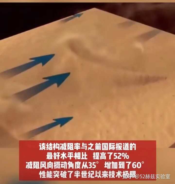相比国际上最好的减阻率水平,该结构硬是提高了52%,减阻风向摄动角度也从35°增加到了60°。
