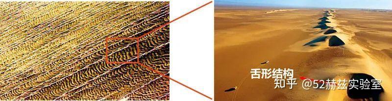该结构由多个小尺度的舌形沙垄组成的,每个小尺度的舌形沙垄上也有类似的舌形结构,这种结构随着尺度的变化而变化。