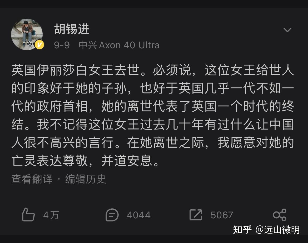 如何评价民族主义报纸《环球时报》前主编胡锡进向女王表示尊敬,并且高度评价女王的一生为“没有辱华的一生”?