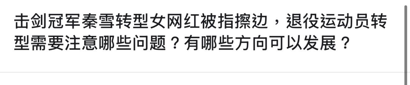 击剑冠军秦雪转型女网红被指擦边,退役运动员转型需要注意哪些问题?有哪些方向可以发展?