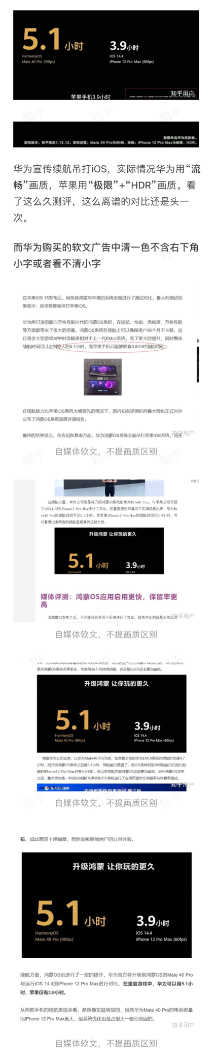 胡瓜宣传续航吊打苹果,实际情况非常非常小的文字备注:胡瓜用“流畅”画质,而苹果却是最费电的“极限”+“HDR”画质。