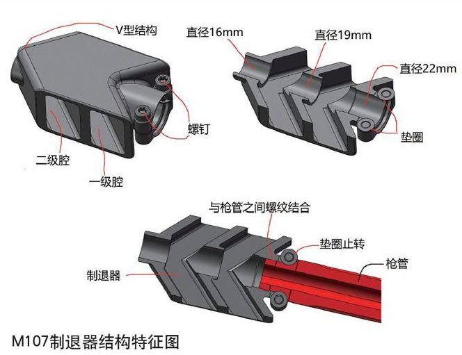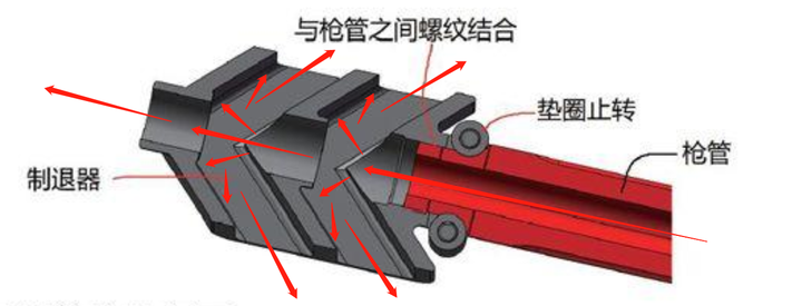 设计合理的制退器可以抵消40%-70%的后坐力,是枪械消除后坐力的主力军。