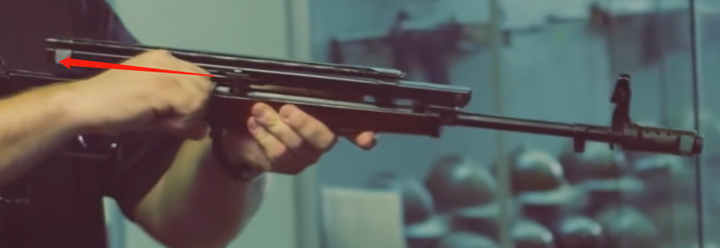 AKM 可以看到,不但后托抵肩位置更高了,减小了与枪管延长线的高度差,还在枪口开了个斜槽,让火药气体向上喷射的同时给枪口一个向下的力来抵消上跳的扭矩。