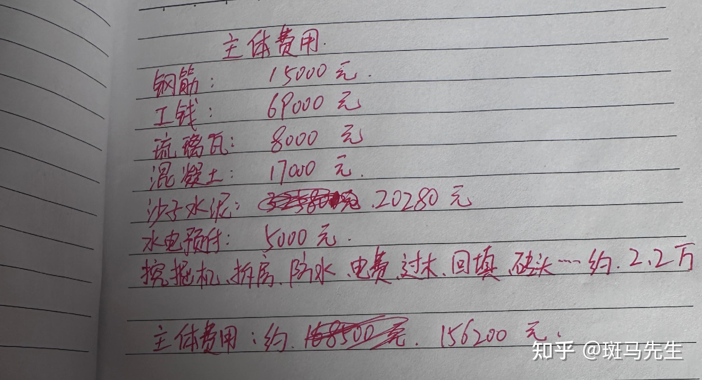 主体费用 注:工钱 6.9w 是总计,主体➕院墙厕所影壁墙➕院墙垫层