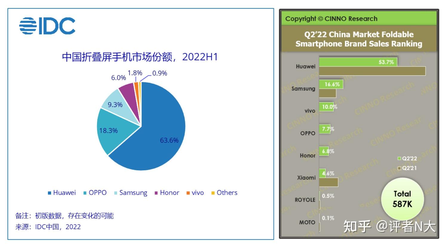 根据CINNO Research的数据显示,P50 Pocket自2021年12月上市以来,连续两个季度蝉联国内折叠屏手机销量冠军。而华为无论是Q2还是整个上半年度,都鲸吞了国内折叠屏市场超50%的份额。