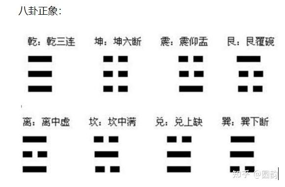 乾、兑(金);震、巽(木);坤、艮(土);离(火);坎(水)。