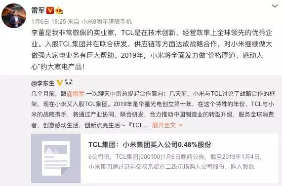 没记错的话之前小米也曾小规模入股TCL和华星光电,也是相当不错的产业链协作。