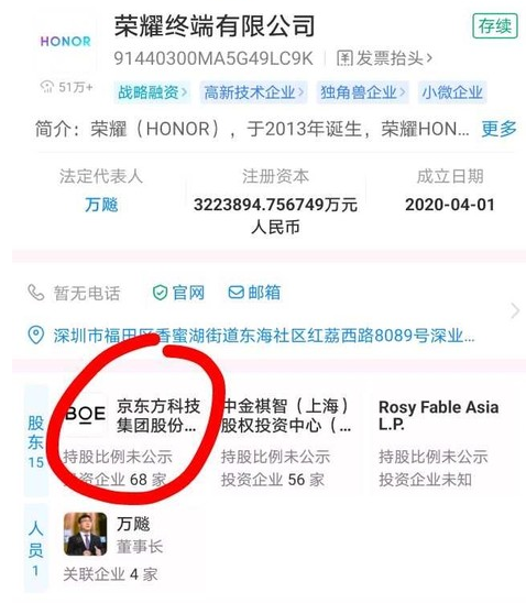 但京东方能出现在荣耀大股东名单上,投资数额也不可能很少。