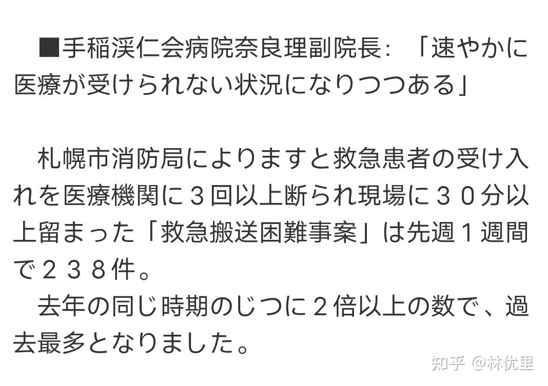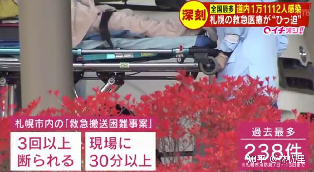 札幌市,一周内(11月7日~11月13日),打3通电话以上被拒绝,在现场滞留30分钟没有被接收的「救急搬送困难病例」,一周就有238件,是去年同期的两倍,为札幌历史最高。