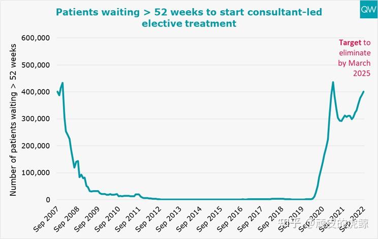 等待超过1年的病人达到40万人,创了历史次高记录(最高在21年初英国病死最严重的那波)。