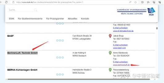 3.4选择一个公司,例如:BerlinerLuft. Technik GmbH,点击进入该公司的主页