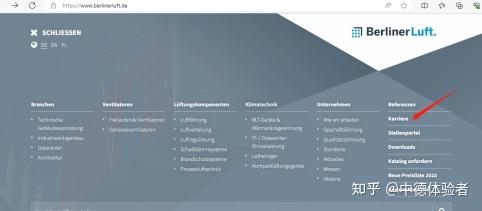 3.5进入主页后,点击Karriere (工作机会),进入目前空缺岗位