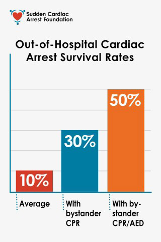 在AED的有效帮助下(需要CPR配合),生还率来到50%左右。
