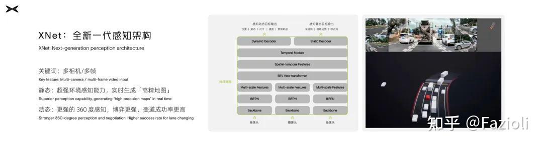 小鹏汽车:国内造车新势力的代表小鹏汽车和特斯拉正好相反,激光雷达用的那叫个顺溜,P5搭载激光雷达,P7也申报了激光雷达版本。对于高精地图,至少在今年1024科技节前,小鹏是非常依赖的,它的XPILOT就是利用高德的高精地图实现了领先的高速NGP,还曾斥资2.5亿元收购了有测绘资质的智途科技。但在1024科技节后,我们明显看见了小鹏的转变,它的XNet(全新一代感知架构)采用了重感知轻地图的策略,采用一种凭借传感器不断采集信息,“实时构建”高精地图的思路实现辅助驾驶,并宣称在2023年实现无图区域的导航辅助驾驶。