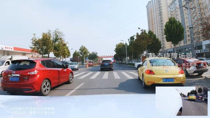 路边停放的车辆或是随意穿行马路的非机动车和行人都有可能成为障碍物,测试车辆对于这两种情况都处理得很好。