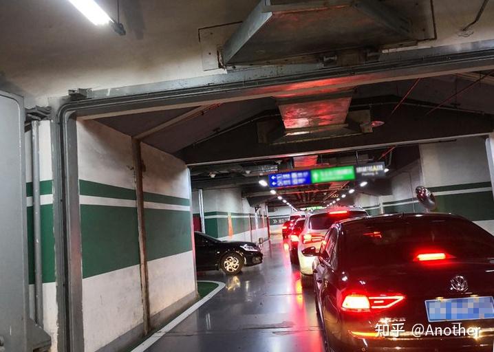 ①为防止车都堵在入口处,我刚下地库就发现左转、直行停车的路被拉上线不让走,只保留了一个向右的口,大家需要在保安的限流控制下排队鱼贯而入;