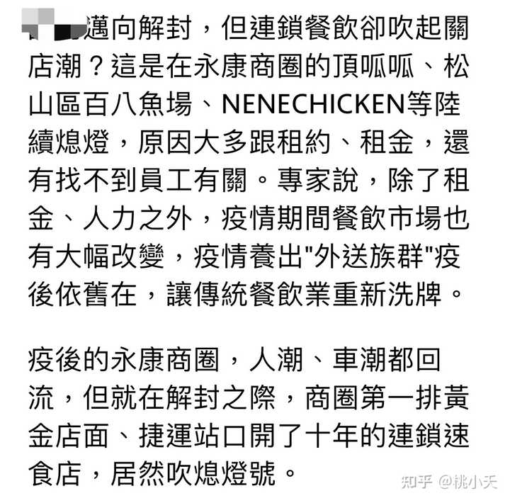 而店家因为疫情,人潮恢复慢,又不太能雇到适合的人,所以黄金商圈的热门店面收掉也不鲜见。很多热门的商圈不见以往的繁华。