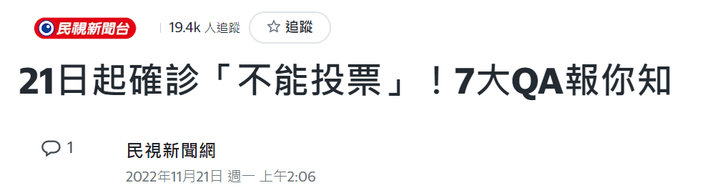 26日台湾要“选”,21日确诊后,就不能“投票”了