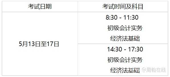(一)初级资格考试于2023年5月13日至17日,共10个批次。具体安排如下:
