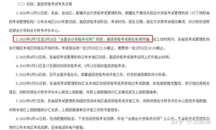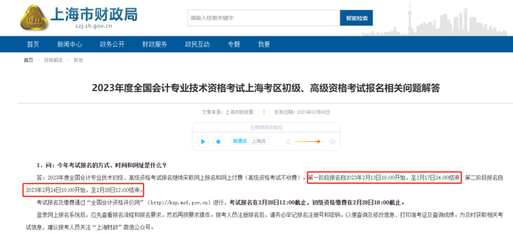 2.2023年2月7日至2月28日“全国会计资格评价网”初级、高级资格考试报名系统开通。在上述时间内,各省级考试管理机构自行确定本地区的报名开始时间。考试报名统一在2月28日12:00截止,缴费统一在2月28日18:00截止。