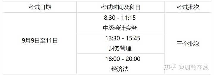 (四)中级资格考试于2023年9月9日至11日举行,共3个批次,各科目具体考试时间如下: