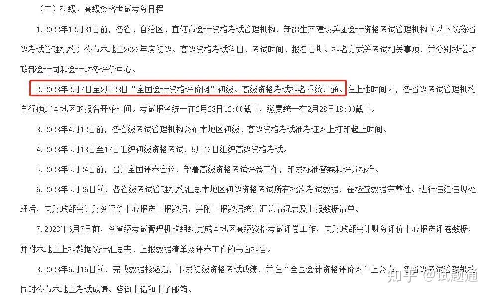 2.2023年2月7日至2月28日“全国会计资格评价网”初级、高级资格考试报名系统开通。在上述时间内,各省级考试管理机构自行确定本地区的报名开始时间。考试报名统一在2月28日12:00截止,缴费统一在2月28日18:00截止。