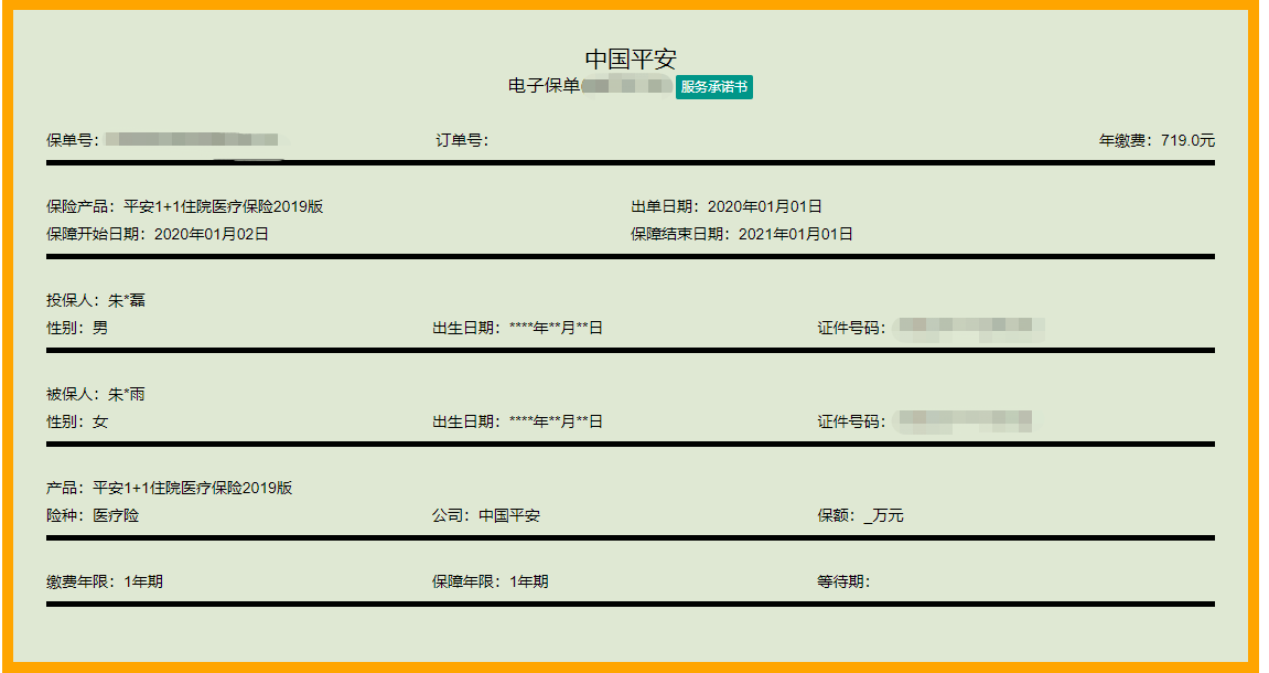 2020年1月1日,朱先生为2个月大的女儿投保了平安1+1住院医疗保险2019版。