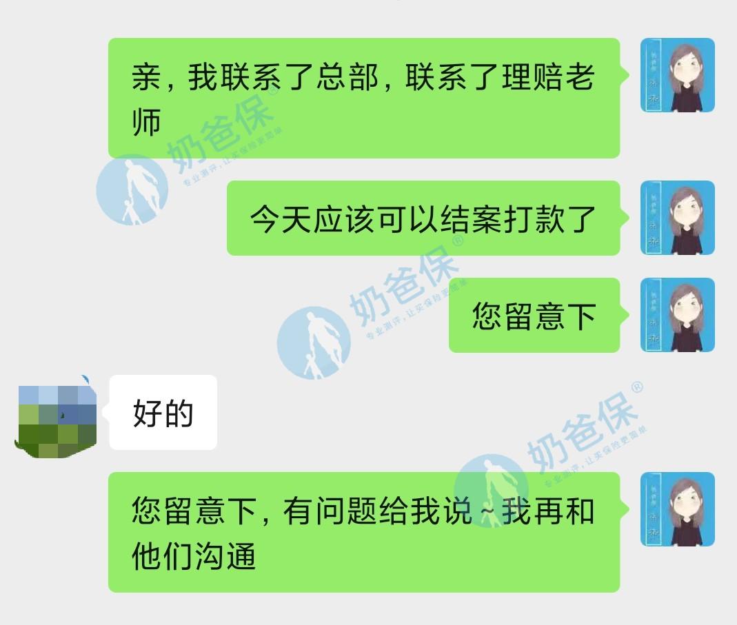 整个过程虽然有些小坎坷,但是在奶爸保理赔团队专业指导下,还是十分顺利的。